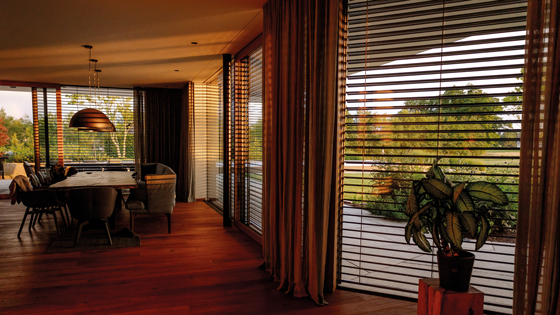 • Textilscreens für modernes Design und kontrollierten Lichteinfall.